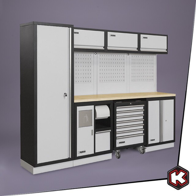 L arredamento modulare per officina è una soluzione smart funzionale e pratica per ottimizzare le attività e organizzare al meglio gli spazi di lavoro. Struttura in acciaio con piani in legno o acciaio inox l arredamento modulare fervi è la soluzione ottimale per la tua officina il tuo garage o il tuo angolo racing dimensioni totali larghezza. L arredamento è composto da.